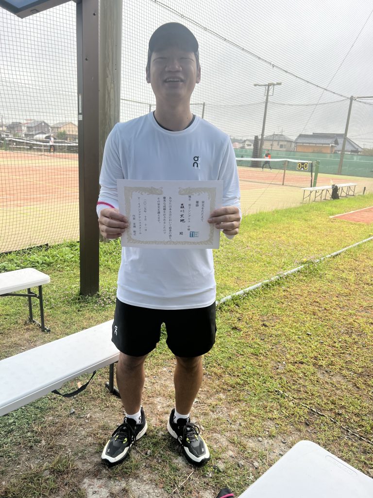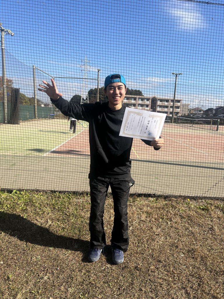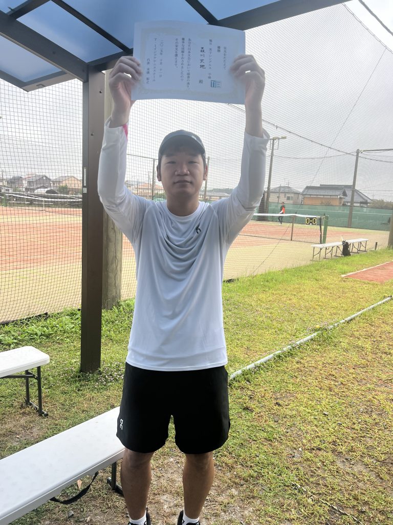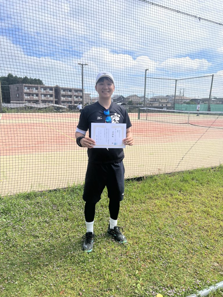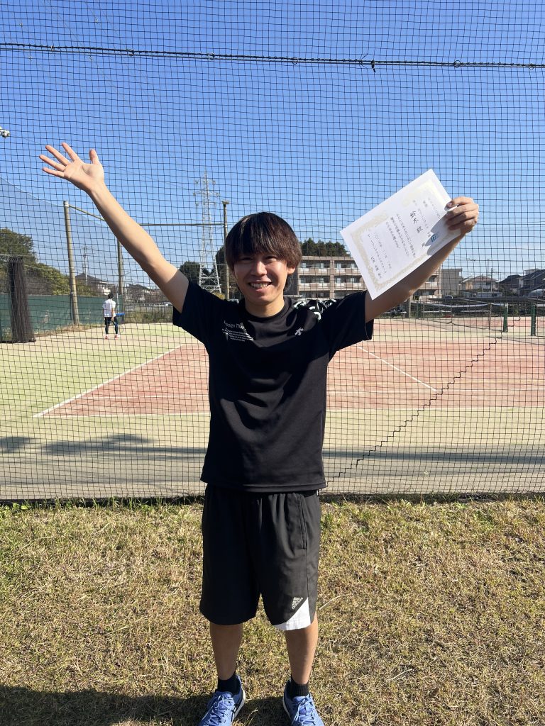 ありがとうございます。シングルスの試合を高校生の頃以来全くやっていなかったことに加えて、暑さもありかなり疲れましたが優勝出来て嬉しいです。今日の経験を今後に活かしていきたいです。